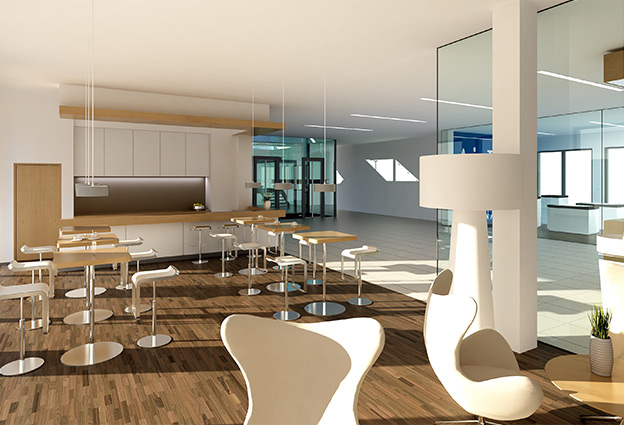 Der Entwurf für das Bürogebäude auf einem ehemaligen Industriegelände in Neu-Isenburg basiert auf einem Investorenwettbewerb. Neben wirtschaftlichen Gesichtspunkten standen Flexibilität und Funktionalität im Vordergrund. Die Möglichkeit einer Erweiterungsfläche sollte gegeben sein.