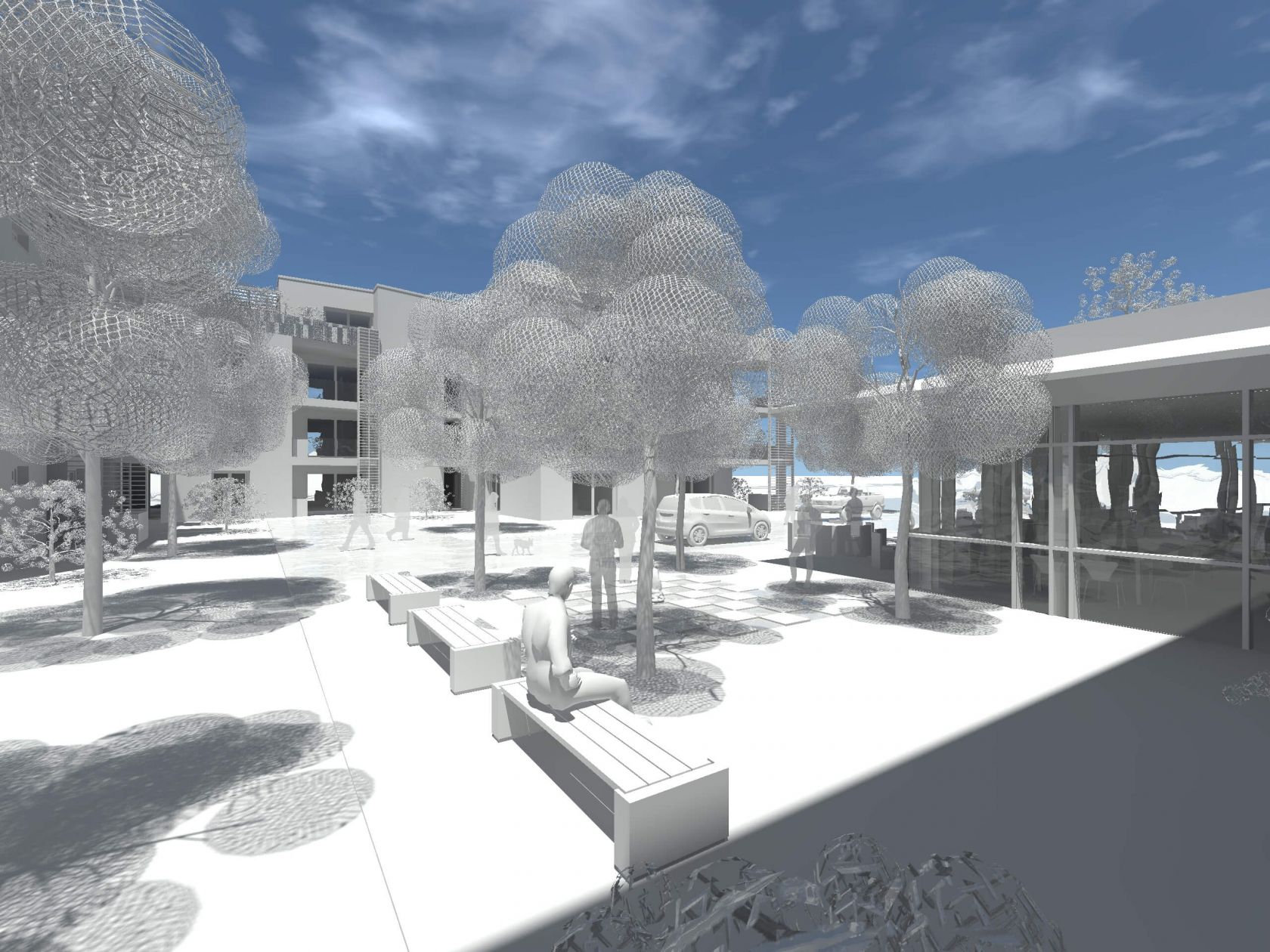 Der Investorenwettbewerb sah ein Konzept für altersgerechtes Wohnen vor. In enger Zusammenarbeit mit dem Investor, erarbeiteten wir einen Entwurf mit zwei gegenüberstehenden Gebäuden, die einen geschützten Innenraum bilden. Die zwei Gebäude sehen altersgerechte Mietwohnungen, Räume für Tagespflege und Serviceleistungen sowie Gemeinschaftsflächen vor. Die Gebäude sprechen eine klare Formensprache, die warmen Materialien sowie die ausgestalteten Grünzonen bringen die konzeptionelle Naturverbundenheit zum Ausdruck. Im Vordergrund stehen die Menschen mit ihren Bedürfnissen nach Gemeinschaft, gepaart mit dem Bewahren ihrer Individualität.